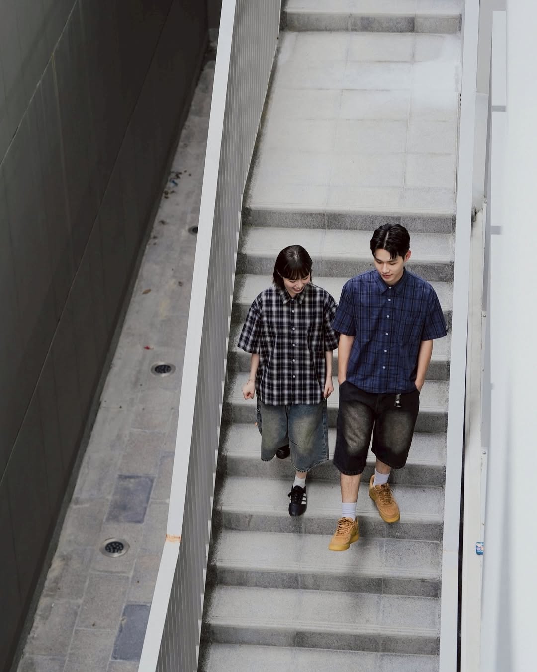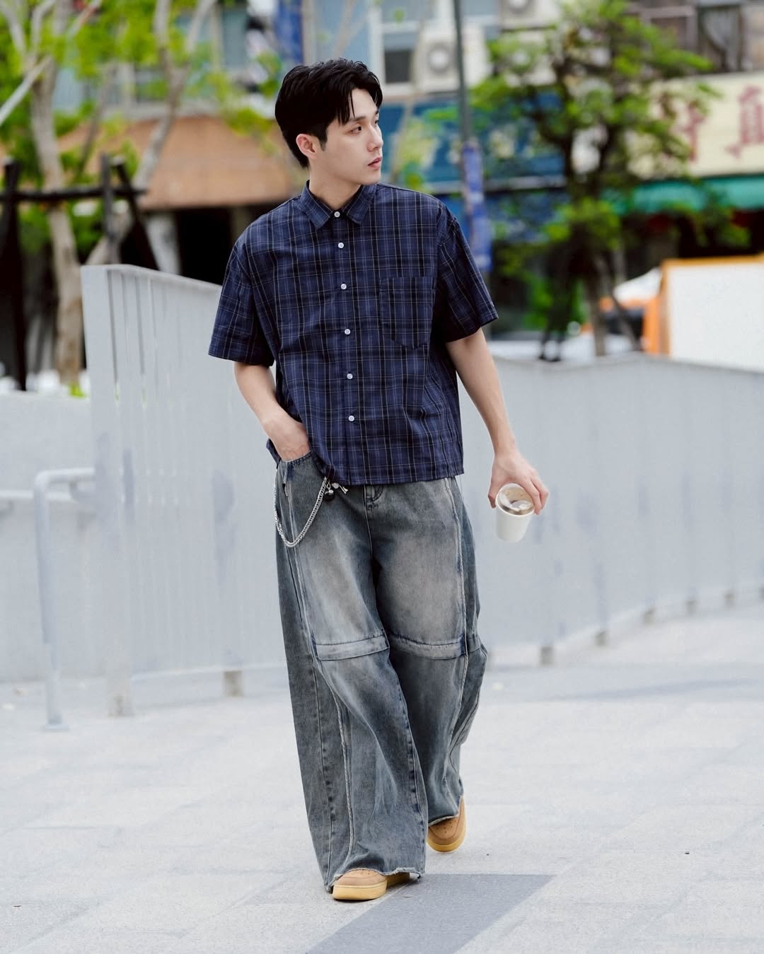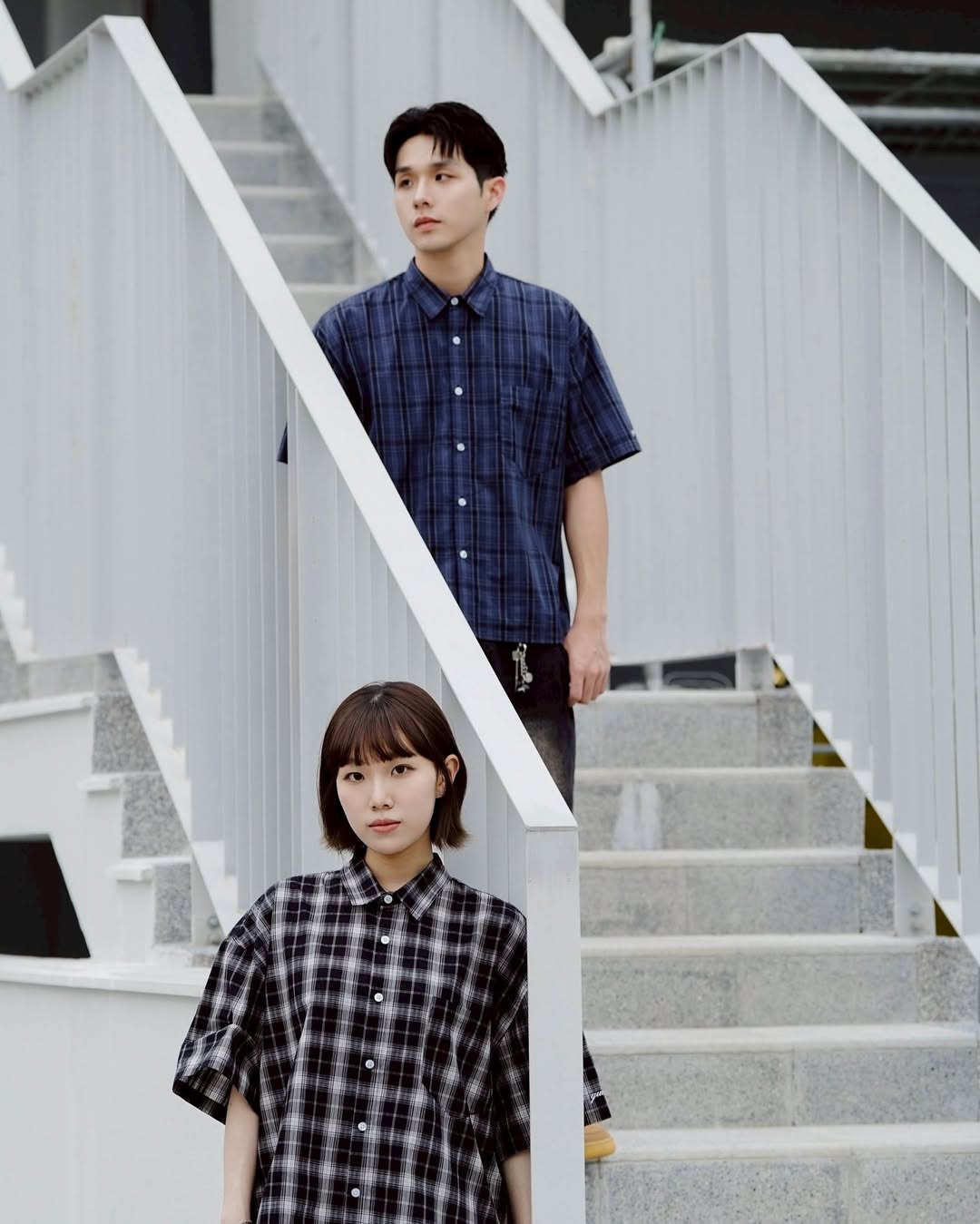 簡約排扣設計,與格紋排列對齊,呈現乾淨俐落的視覺效果