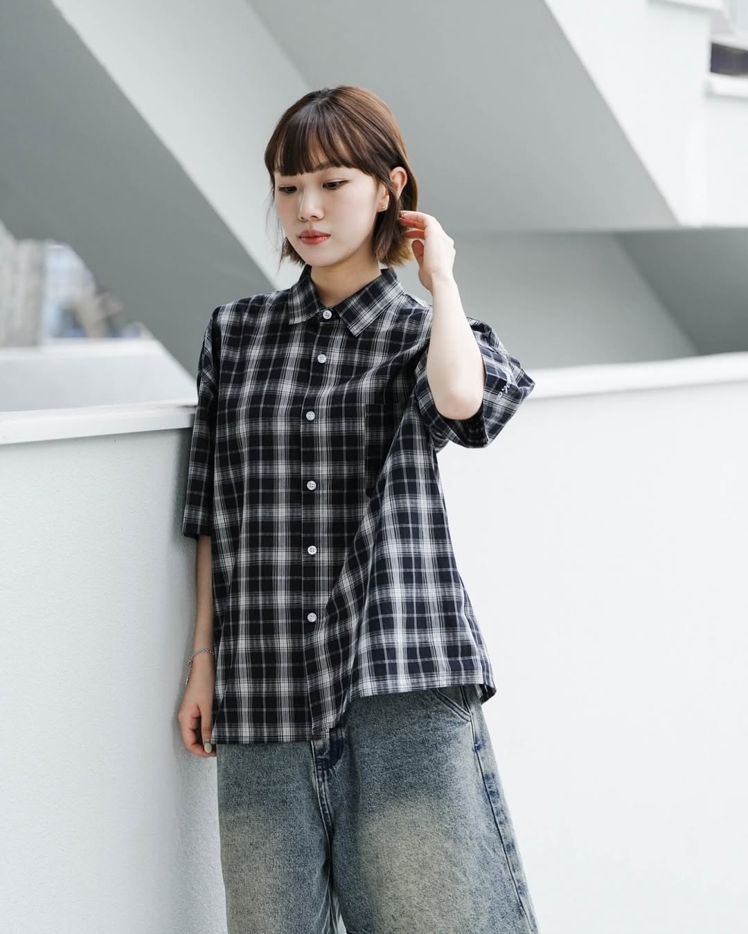 QUEST Boxy Fit Plaid Shirt|格紋短版襯衫