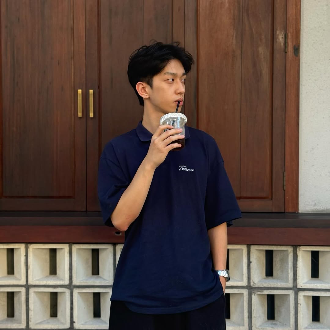 藍色POLO衫的沉靜,搭配黑色短褲的俐落,